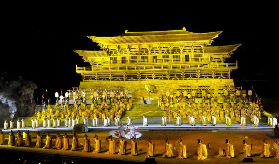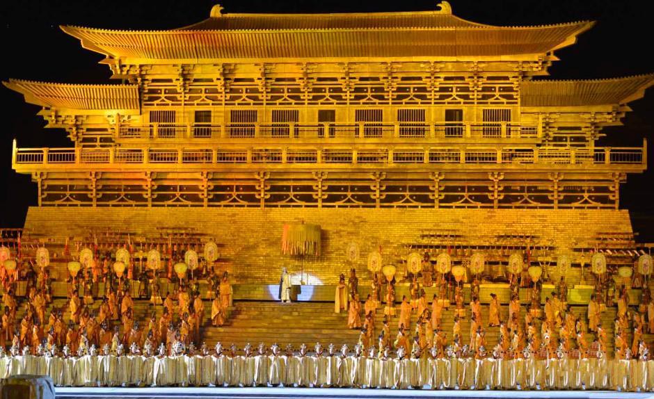 “五一”小长假的临近,西藏旅游逐渐升温。由1300年前唐朝文成公主万里跋涉、历经艰辛而无悔的进藏和亲历过程改编的实景剧《文成公主》成为游客们的最爱。图为中国海拔最高的实景剧《文成公主》演出现场。李林 摄