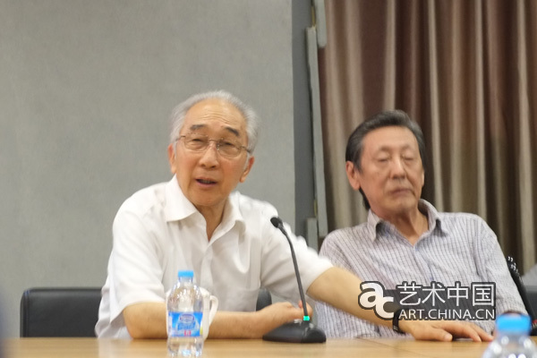 靳尚谊先生首先发言,他回顾了学生时代以及与朱先生共同担任中央美院领导岗位的情景。青海虽然是偏远地方,却对朱乃正艺术的成长起到了巨大的帮助。1980年调回美院后,最美院的发展做出了很大的贡献。朱乃正是最早在油画中进行中国水墨写意画实验的画家,第六届全国美展获奖作品《国魂——屈原颂》是他浪漫主义风格最高的代表作。