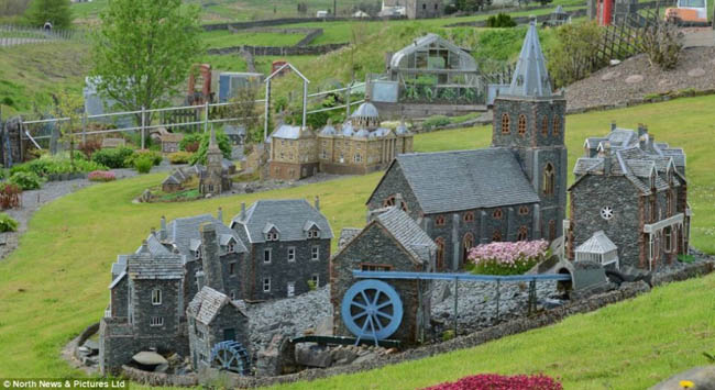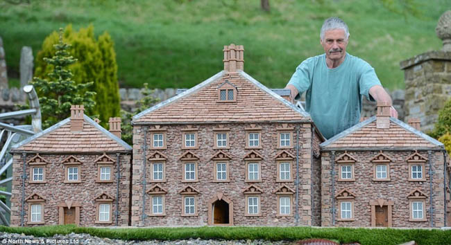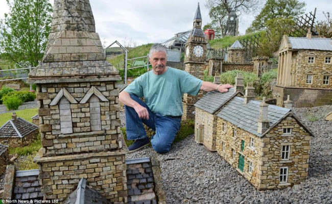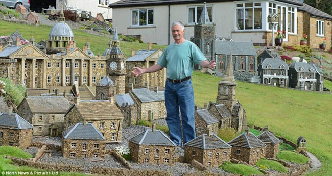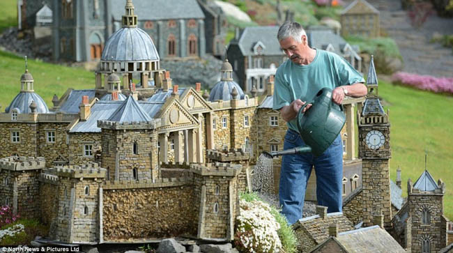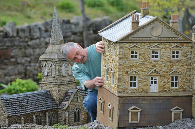 67岁的前建筑工人罗宾逊在退休后仍不愿放弃老本行。他在自家花园里继续盖高楼,他已在花园里建成了三座微型村庄和一座高达3.6米的大本钟模型,可以边干活边看时间。