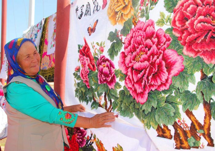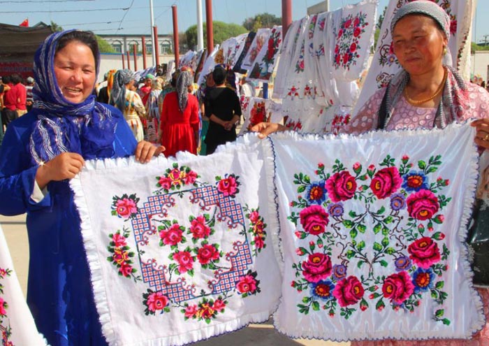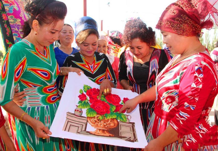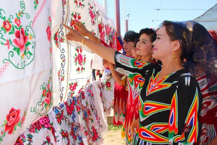 8月27日,新疆库车县比西巴格乡农村妇女举办了一场手工刺绣品展览会上,500多件妇女们的绣品参加了展览,绣品引来参观者的赞叹。