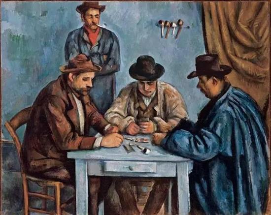 从1890 年到1896 年,塞尚专以玩牌者为题材,进行了一次有野心的绘画尝试。他从自己家位于普罗旺斯艾克斯的庄园请来农场工人作为模特。在无数试作的基础上,他最终完成五幅画。