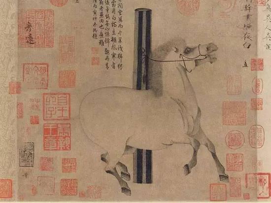 照夜白是唐玄宗(712-756年在位)宠爱的一匹战马。据传此画的作者是韩幹,他笔下的骏马不仅形态逼真,其神态也跃然纸上。