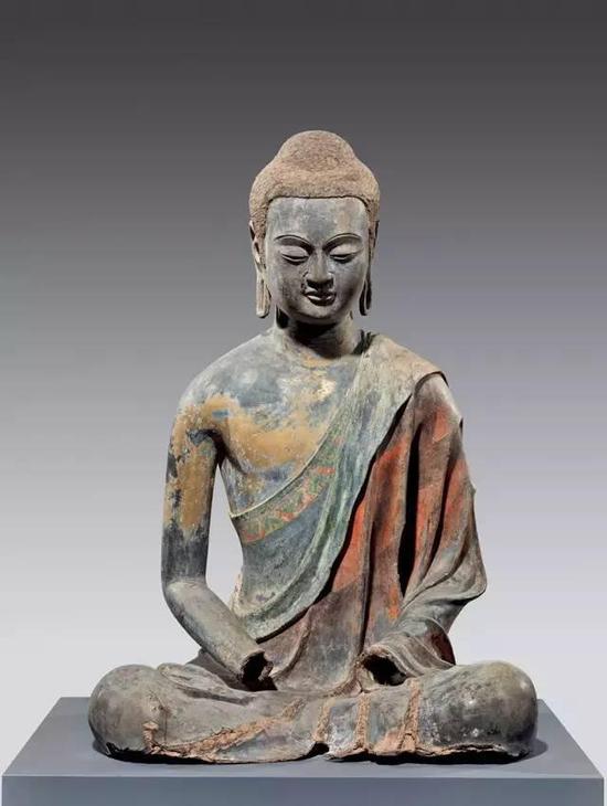 从阿弥陀佛双臂的位置可看出,现已遗失的双手原来应是结禅定印。