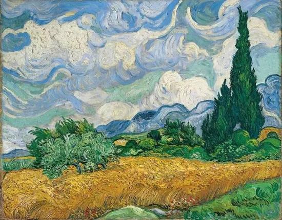 凡高认为,这幅洒满阳光的风景是他描绘夏季的油画中“最优秀”的作品之一,作于1889年,也就是他在圣雷米精神病院度过的那一年。