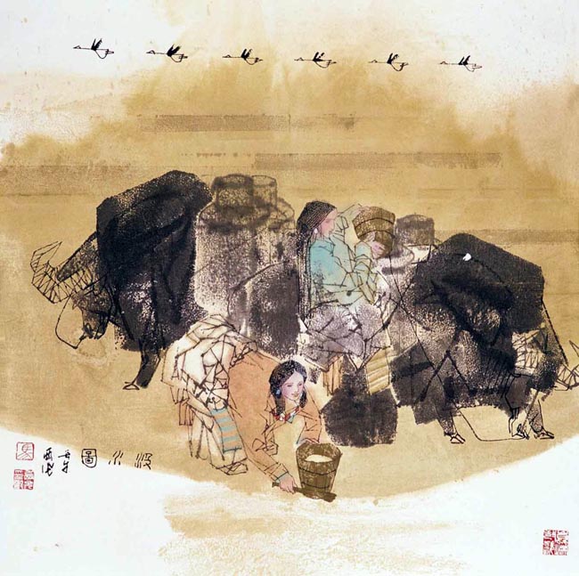 马西光,1932出生于山西省临猗县,祖籍山东。1948年马西光考入中国人民解放军西北军政大学艺术学院美术部学习,1957年考入西安美术学院国画系深造,作品以人物画见长。他在高原生活了近四十个春秋,他熟悉高原,热爱高原。他创作的高原人物画展现出浓郁的西部风采,独特的渗透技法,动态的艺术构图,浓郁的诗情画意,蕴含着高原粗矿,奔放的激情,充满着对生活的热爱和赞美,具有鲜明的艺术风格。现为青海省优秀专家,中国美术家协会会员,中国书画函授大学教授,美协青海分会荣誉主席。曾任玄圃画院副院长,青海省政协常务委员,青海美协副主席。