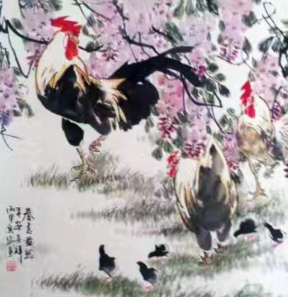 段国瑞,1940年生于河北省邯郸市肥乡区,退休前任职于邯郸市肥乡区文化馆馆长、副研究馆员、河北省美术家协会、书法家协会会员,邯郸市美协、书协理事。原肥乡县政协1-5届的协委员。一生从事书画创作和书画辅导。书法师从二王。绘画则多有涉猎,善花鸟,能山水,偶作人物。尤其画鸡,堪称一绝,造型准确,笔墨酣畅淋漓,动态自然多变,挥洒自如,独具风格,有冀南鸡王之美誉。作品曾在中国美术馆、日本、美国、新加坡展出,并被国际友人收藏。个人艺术简历及作品载入《中国美术家大字典》、《百年经典——中国美术作品集》等多部辞书。 为纪念中华人民共和国成立五十周年和迎接二十一世纪的到来,曾于1997年——2000年三年时间完成五十米长卷,画有二千只形态各异的鸡,名曰《跨世鸡》。曾被县、市省各电视台和新闻媒体报道,引起较大轰动。出版有《鸡年画鸡》挂历、《段国瑞画鸡作品选》和《当代实力派画家段国瑞作品集》。